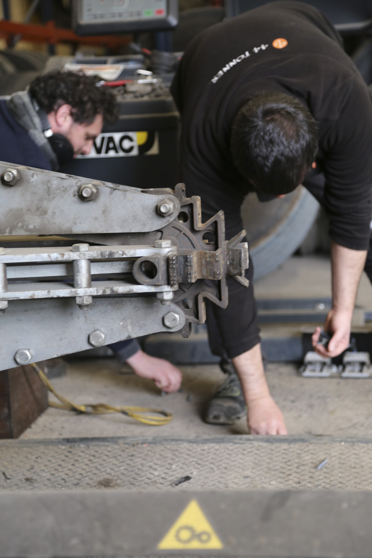Nous arrivons après 14h dans le garage poids lourd où Josiane nous accueille. C'est elle qui a accepté de nous recevoir. On s'est dit au téléphone qu'on arriverait peut-être à convaincre son fils Kevin Sommacal, gérant de cette entreprise dont l'activité s'est diversifiée au fil des années : reconditionnement de pneu, réparation de systèmes hydrauliques et depuis peu commerce en ligne de pièces détachées VL.