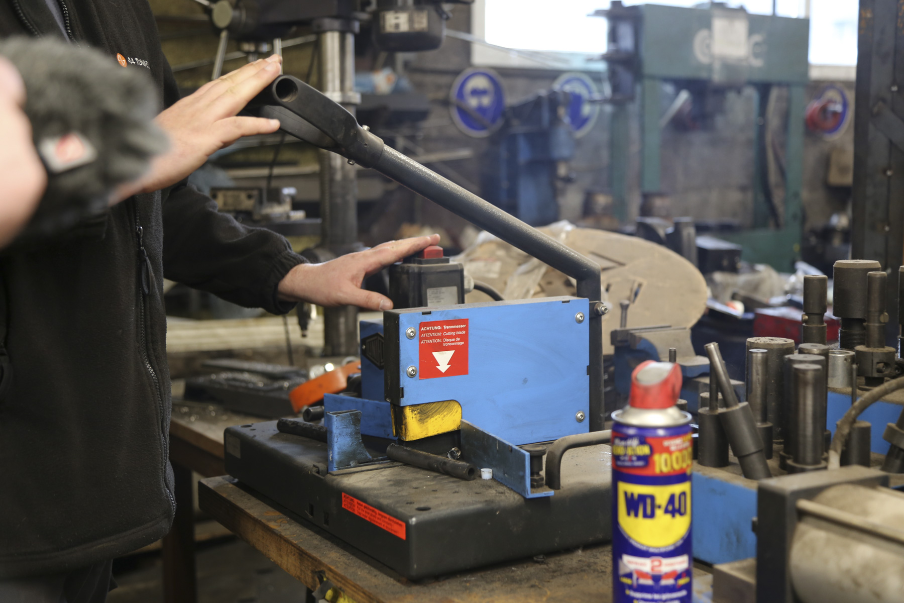 Kevin prendra avec nous presque une heure de son temps bien précieux pour nous faire sentir les matières : huiles, pneus, liquides nettoyants, machines... Il nous détaille les gestes et les outils, allumant ses machines exprès pour qu'on ait les sons. C'est la fête.